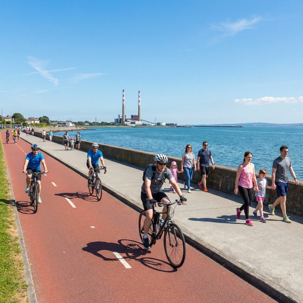 Scenic, flat dedicated cycle lane with views of Dublin Bay. Great for all levels.
